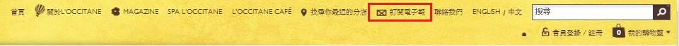 1. 在L'OCCITANE購物網右上角點擊「電子報訂閱」